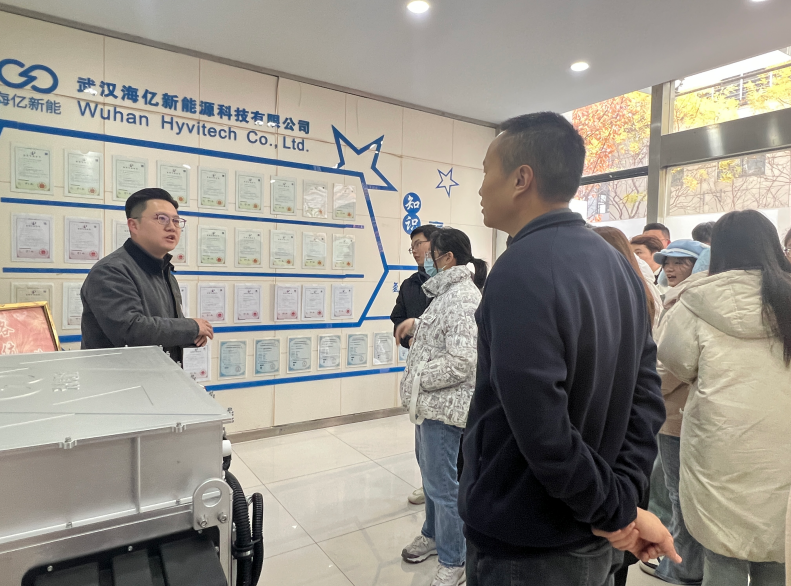 At 2:30 p.m., the group arrived at Wuhan Hyvitech Co., Ltd., a leader in the hydrogen fuel cell industry known for its strong technical foundation and market presence. Company representatives gave students a comprehensive overview of the development trends in China’s hydrogen energy sector, market demand, and the research, production, and testing of hydrogen fuel cells. The students actively engaged with the team, particularly on questions of safety, receiving detailed explanations in a lively and orderly discussion.