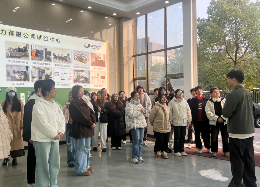 At 3:30 p.m., the group visited their second stop: Wuhan Institute of Technology Tongyu Xinyuan Power Co., Ltd, a company specializing in the development and manufacturing of NEV drive systems. Students toured the modern production lines and system testing labs, gaining a better understanding of the critical roles of electromagnetic signal control and thermal management in NEV drive systems. Their in-depth exchanges with engineers provided clear, technical insights into both the mechanisms and applications of NEV technologies.