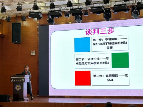 最后徐潇潇副教授从申明价值、创造价值和克服障碍三个方面为同学们讲解了谈判三步,并分别从商务谈判的开局、建立良好的谈判气氛和开场陈述与报价三个方面带同学们了解商务谈判开篇的策略。