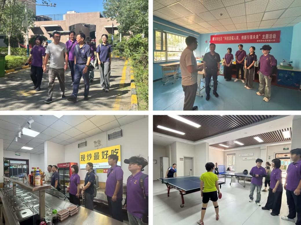 7月9日,实践队一行在浦东街社区干部的引导下先后参观了社区食堂、社区主题活动教室、党群服务中心等社区核心机构。每到一处,社区干部都详细介绍功能定位与运营情况。接着,实践队与社区干部围绕社区食堂的“60岁以上老人送餐”项目展开专题讨论,该项目聚焦老年群体用餐需求,是社区创投中兼具社会价值与实用性的典型案例,双方针对“如何保持项目长期延续性”“怎样有效发动社区志愿者力量”等核心问题深入交流:社区干部分享了当前通过“低偿服务”维持运营的经验,以及志愿者招募中面临的“持续性不足”等挑战;实践队成员则结合创业专业知识,提出“建立志愿者积分兑换机制”“联动周边商户提供资源支持”等建议,为项目优化提供新思路。