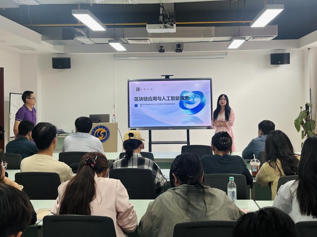 在互动环节,师生代表们积极提问,就区块链技术的未来发展趋势、创业过程中的技术难点以及如何应对政策监管等问题与谭博士进行了深入交流。谭博士耐心解答,分享了他的独到见解和宝贵建议,他鼓励师生们要勇于探索新技术,敢于创新,同时也要注重合法合规,确保可持续发展。